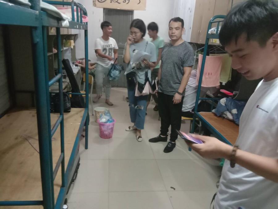当前位置: 系部首页>学生工作6月24日晚上,机械工程系张星老师带领着辅导员邱淑娇、辅导员曾嘉靖对机械工程系学生宿舍卫生状况和安全隐患进行了大排查。