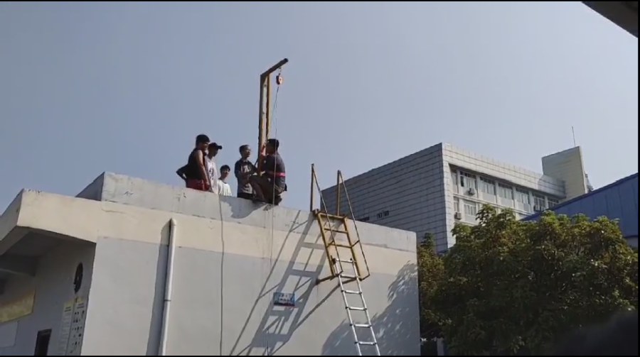此次消防演练的主要分成三个部分,首先观看安全防范知识影片,其次介绍灭火器、消防栓的使用方法,老师讲完干粉灭火器使用方法后还讲了一些消防知识及火场逃生的方法。最后介绍高空索降的正确使用方法。在老师的指导下部分同学亲自操作使用了灭火器、消防栓、索降。