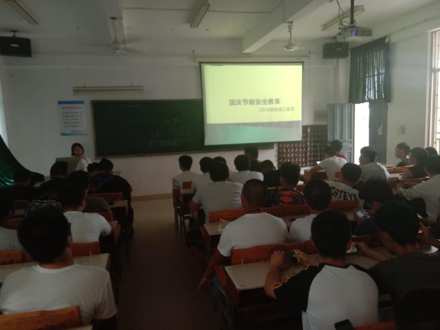 国庆节即将来临,为让我系师生度过一个安全、愉快、健康的小长假期。2019年9月27日,2018级机械工程系全体学生在33号楼303开展了国庆节前安全教育活动,会议由辅导员邱淑娇主持。