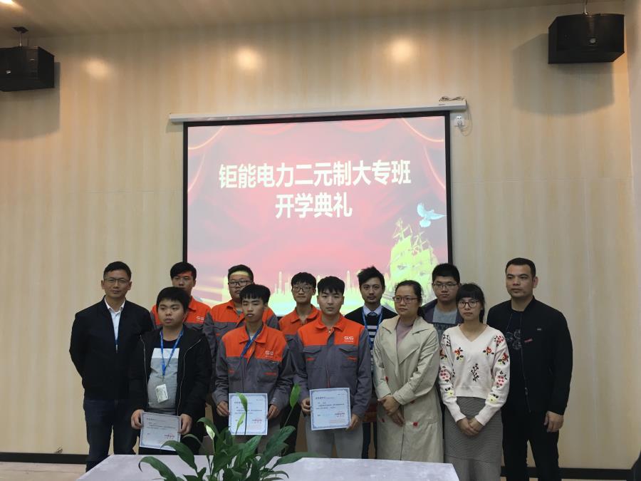 当前位置: 系部首页>学生工作11月27日下午,钜能电力“二元制”大专班2019级开学典礼在钜能第一会议举行。钜能电力有限公司运营中心生产总经理张茂斌、机械工程系副主任张星,专业主任陈菡菡,校企合作老师刘凯辉,辅导员朱菡以及2019级新生参加本次典礼。