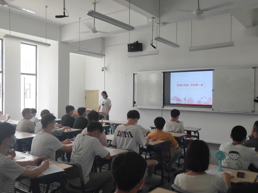 当前位置: 系部首页>学生工作为加强疫情期间的学生管理,做好疫情防控,抓紧抓好学生食品安全管理和营养健康保障工作,维护广大师生疫情期间的身心健康。2020年6月21日15点30分,机械工程系在公教一北203召开“开学第一课”主题教育班会,会议由辅导员邱淑娇主持,机械工程系副主任张星老师和机械工程系全体宿舍长出席。