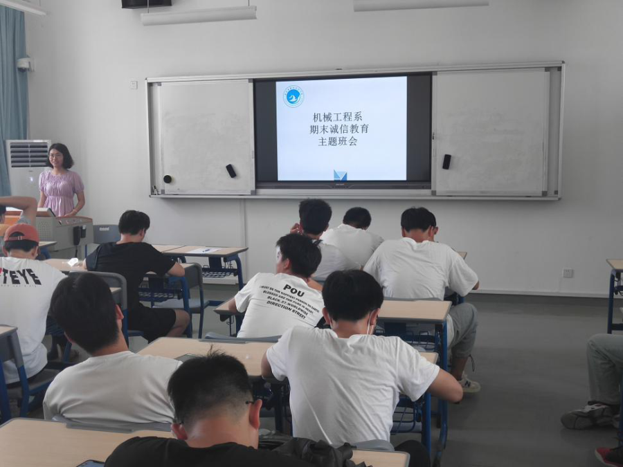 当前位置: 系部首页>学生工作诚信为本,学做真人。为营造良好的考试氛围,增强学生安全防范意识,2020年7月14日12点10分机械工程系在公教一北301开展期末考试诚信教育暨安全教育主题班会。会议由辅导员邱淑娇主持,各班学生代表参会。