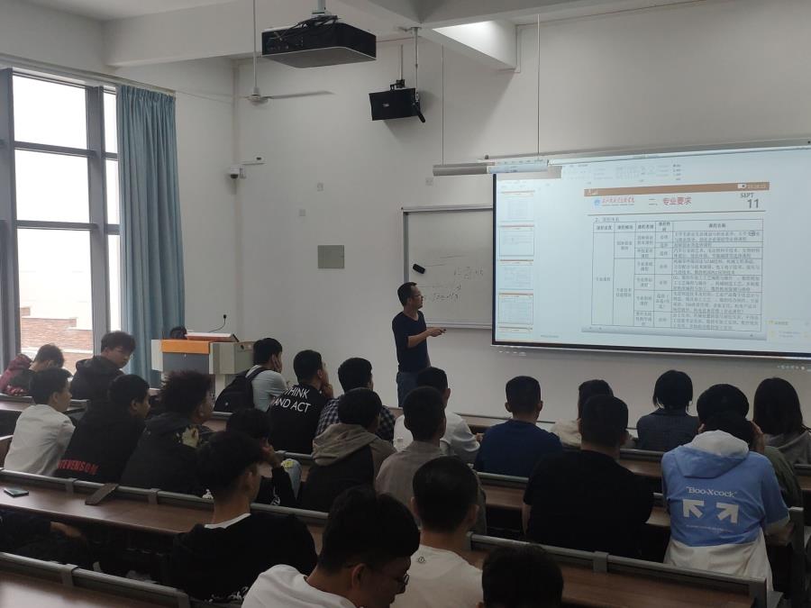 当前位置: 系部首页>学生工作为帮助2020级新生同学更快地适应校园生活,了解所属专业知识,10月16日上午八点,机械工程学院于信息楼中103小礼堂隆重举行2020级新生见面会。机械工程学院许志敏书记、陆宇立主任、张星副主任、林黄耀副主任、大一辅导员曾嘉靖老师、各专业主任及2020级全体新生参与本次新生见面会,本次会议由许志敏书记主持。