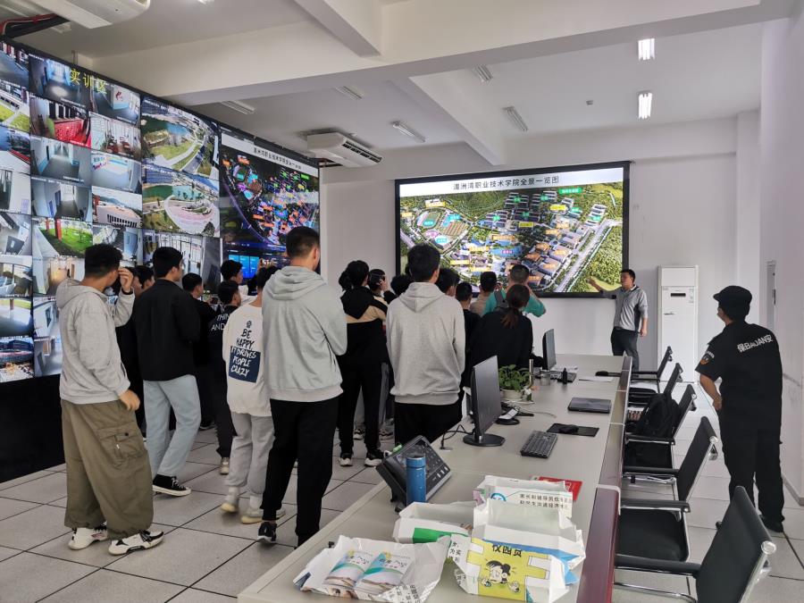 在校园监控室内,陈荔春老师内为新生们详细介绍学校建筑、监控分布和安全设施情况,并向新生们讲解一些关于安全的知识事项,并解答新生们对于新学院的一些问题。现场气氛活跃,教育效果显著。