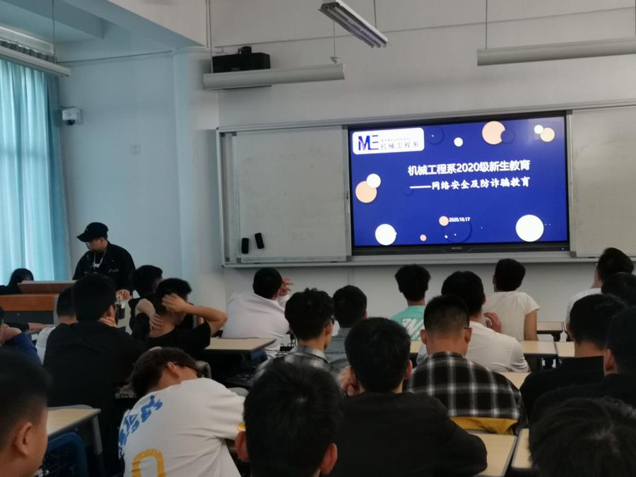 通过此次主题班会,机械系新生深刻明白网络诈骗无处不在,所以本次“网络安全及防电信诈骗”主题班会,就是要告诫新生,如遇见未知来电,小心电信诈骗,小心校园贷,没钱可以找家长,千万不要因为一时的爱慕虚荣而付出青春的代价。