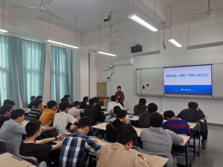首先,辅导员介绍了电信网络发案总体情况,通过案例、视频、PPT 深入浅出的讲解了常见诈骗作案手段,现代网络电信诈骗的新形式、新特点,详细讲述了生活中网上购物、兼职、交友等防骗技巧以及被骗后的应急救济方法。