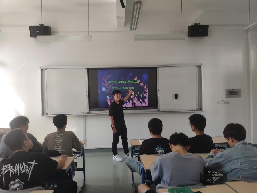 当前位置: 系部首页>学生工作为促进学院“厉行节约,反对浪费”的节约之风,做校园风尚的见证者和践行者。机械工程系于2020年11月27号在公教楼一北302教室召开“让厉行节约成为校园风尚”的主题团课。本次团课由机械工程系分团委书记曾嘉靖组织与主讲,学生干部,学生代表和部分共青团员参与。