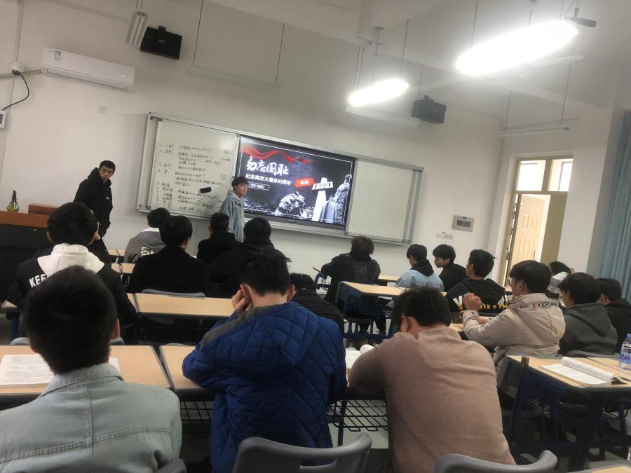 会上,首先由辅导员带领大家重温标志性历史事件并讲述了“南京大屠杀死难者国家公祭日”的来由,鼓励全体学子勿忘国耻,牢记使命,有所担当,砥砺前行,发愤图强,好好学习,让自己更加强大,让我们的祖国更加强盛。