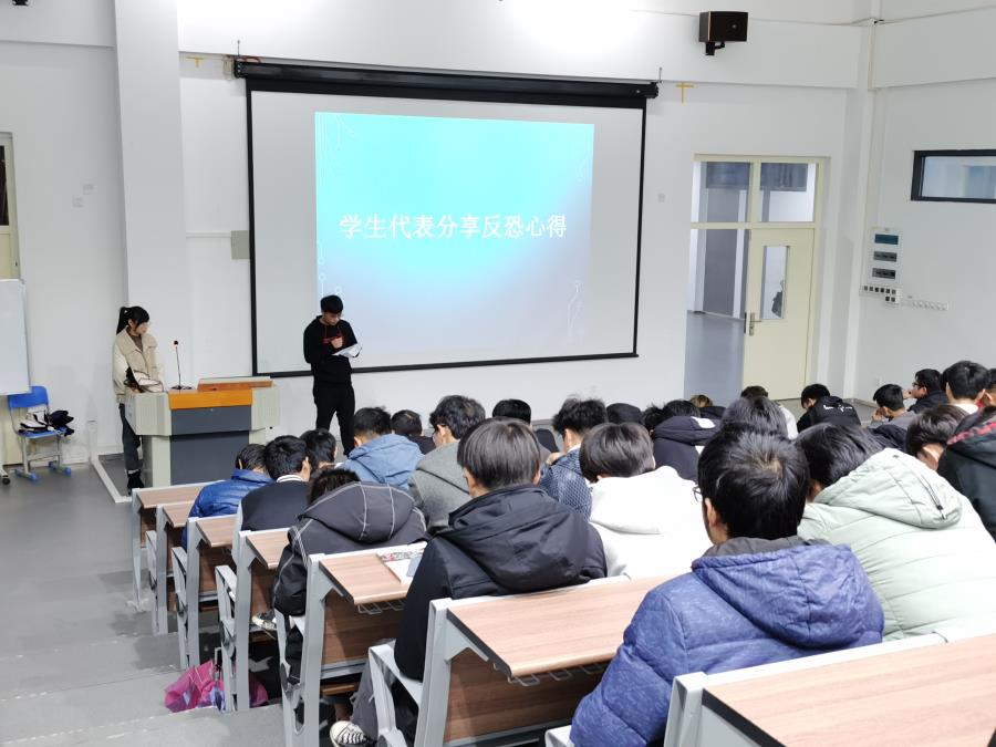 之后,由学生代表上台分享反恐心得,同学们表示作为当代大学生应该积极配合我国反恐工作,勇敢的与恐怖主义作斗争。