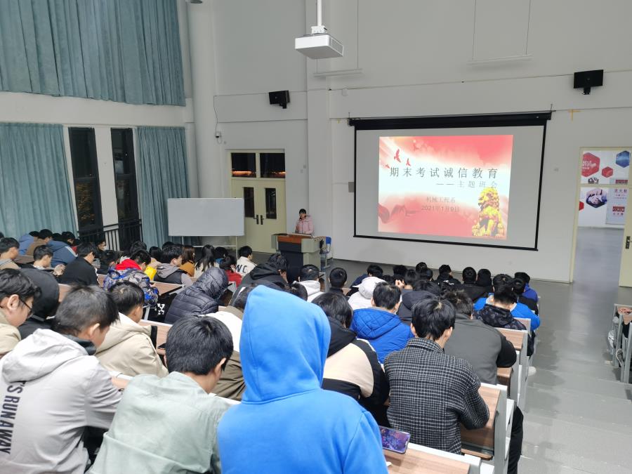 当前位置: 系部首页>学生工作为加强学院学风建设,严肃学院考风考纪,确保学院教学质量。机械工程系于2021年1月9日在信息楼南205召开了期末考试诚信教育主题班会,机械工程系19级全体学生参加了会议,会议由辅导员朱菡主持。
