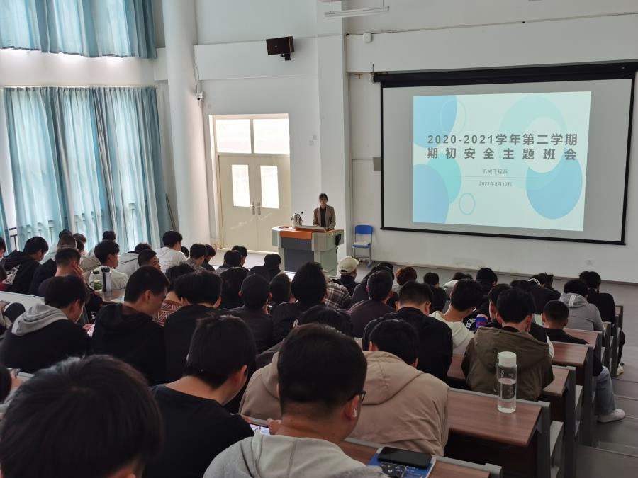 当前位置: 系部首页>学生工作为增强同学们的安全防范意识,提高同学们的安全防范能力,全面普及校园安全常识,部署本学期扫黑除恶排查工作,2021年3月12日机械工程系学生在信息楼南205开展了2020-2021学年第二学期期初安全主题班会,班会由辅导员朱菡主持。