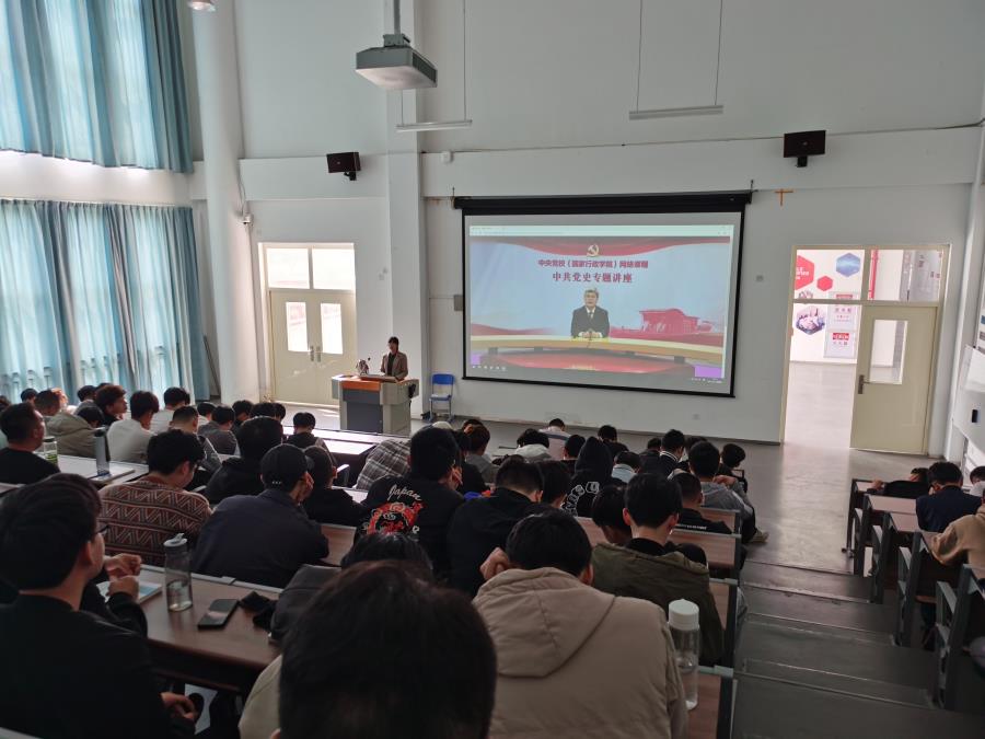 当前位置: 系部首页>学生工作古人云:“以铜为鉴,可以正衣冠;以人为鉴,可以知得失;以史为鉴,可以知兴替。”为了让同学们更全面的学习党史,回望过往的奋斗路,眺望前方的奋进路。2021年3月16日机械工程系于信息楼南205开展“学党史,担使命”爱国主题教育,学习中央党校中共党史专题讲座网课视频。