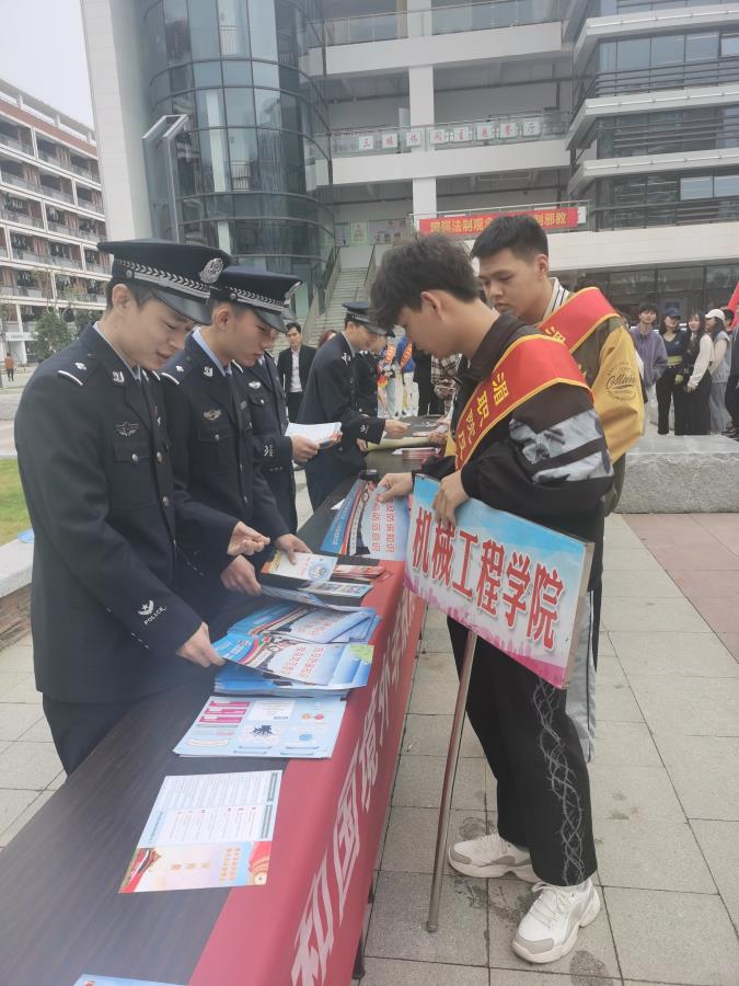 当前位置: 系部首页>学生工作为进一步增强学生国家安全法治意识,更好服务推进维护国家安全战略贯彻落实,2021年4月15日,机械工程系学生积极参加学院保卫科开展的“415全民国家安全教育日”主题活动,本次活动邀请了涵江区人民警察过来宣讲。
