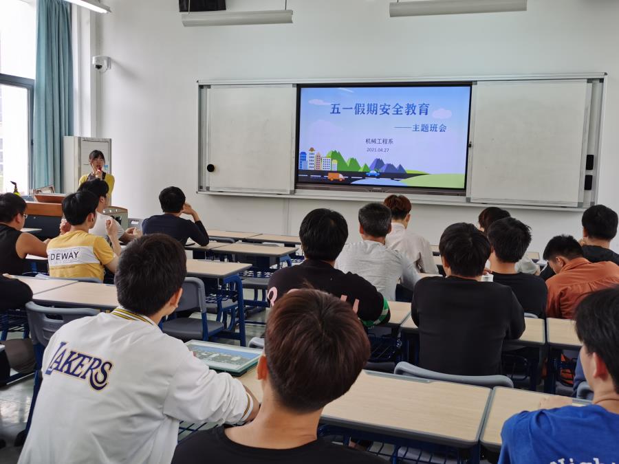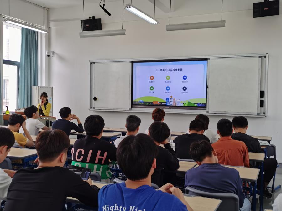 当前位置: 系部首页>学生工作“五一”小长假即将来临,为进一步做好学校安全工作,切实维护学生生命安全和学校安全稳定,让同学们度过一个愉快、平安、健康的假期,4月27日,我系辅导员朱菡在公教1北302教室召开假期安全主题班会,各班级班委积极参加。