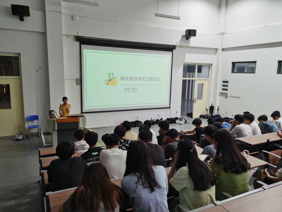 诚信教育是当代大学生思想政治教育的重要组成,而诚信考试则是诚信教育的一部分,是对大学生进行思想政治教育的关键环节,关系大学生的健康成长与成才。随着期末考试即将来临,2021年6月25日,机械工程系各班级分别开展了以诚信教育、诚信考试为主题的班会,辅导员朱菡、曾嘉靖组织,各班长主持。