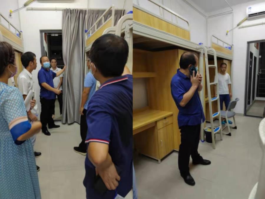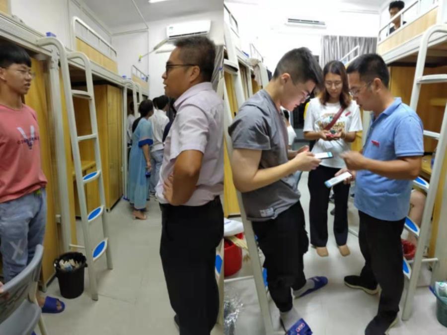 9月8日晚间,陈金毓副院长、陆宇立主任、陈建武书记以及辅导员等相关人员一同走进宿舍,看望新生。