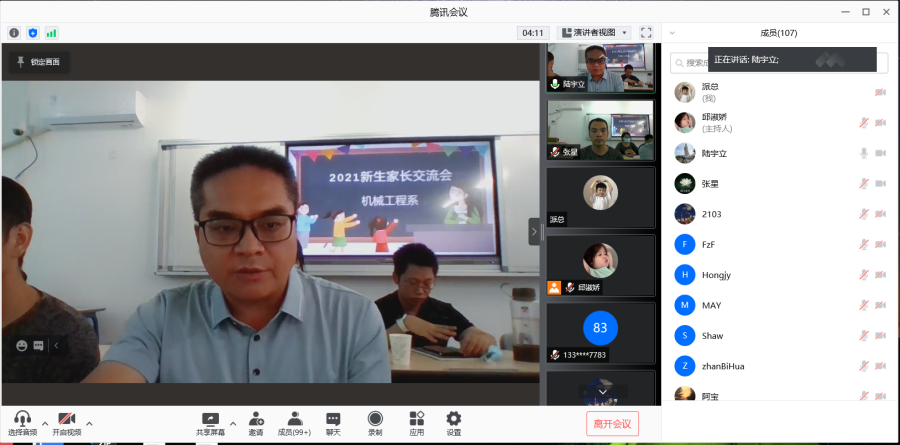 当前位置: 系部首页>学生工作9月9日,机械工程系在线上举办了新生家长见面会,陈建武书记、陆宇立主任、张星副主任、林黄耀副主任、各专业主任及新生辅导员等参加,百来位家长线上出席了本次见面会,现场反响热烈。