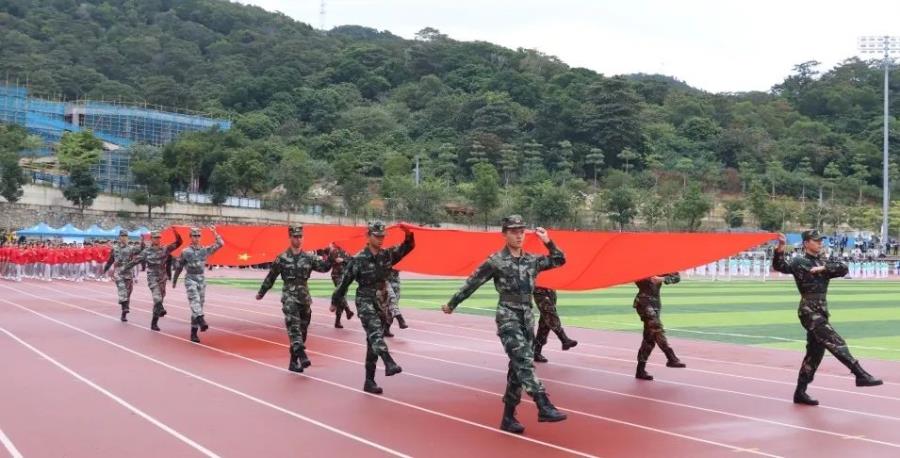 伴随着雄壮激昂的《运动员进行曲》,党旗队、国旗队迈着整齐的步伐向我们走来。