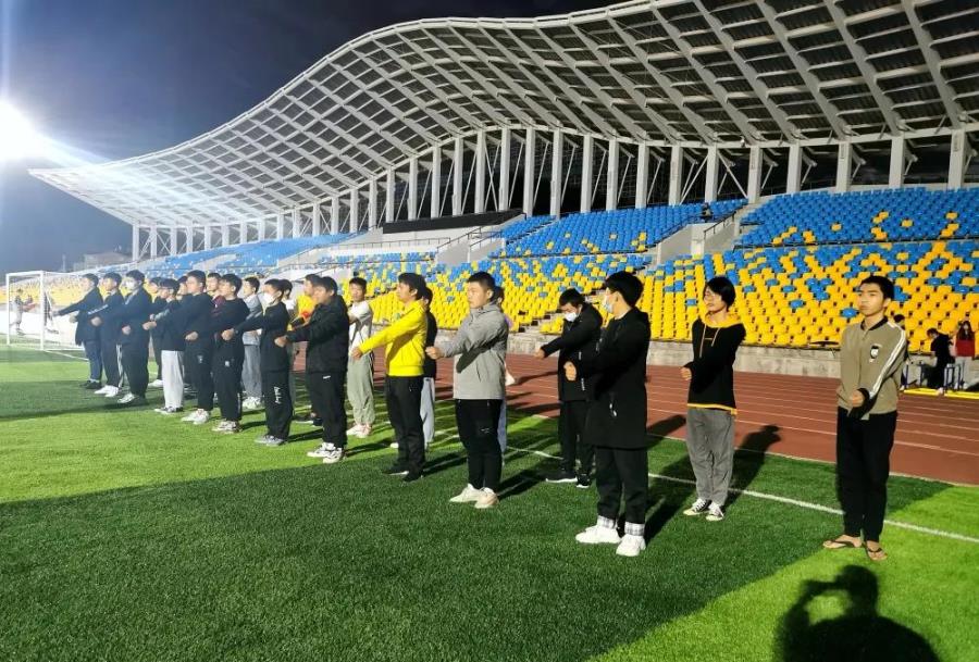 在开幕式上,由我系组建的百人方阵走过主席台时,响亮的口号、整齐的步伐,彰显着机械人的团结、向上与自信,表达着机械人勇攀高峰、争创一流的决心与勇气。 整齐划一的方阵背后,都离不开机械学子的辛勤付出,昏暗的灯光洒在每一位机械学子身上。他们依旧努力训练着那是湄园最靓丽的风景线! 难忘的开幕式已经结束,接下来运动会就正式开始了。机械运动健儿们,加油!为自己、为我系争创佳绩!