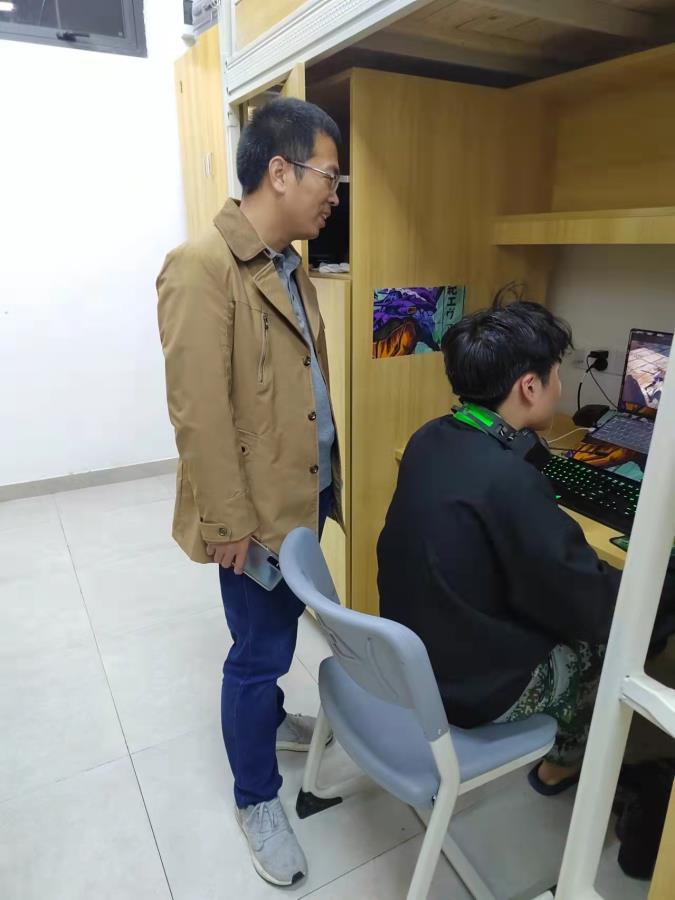 我系将走访宿舍作为一项常态化工作,旨在更好的了解学生,及时为学生排忧解难,为学生营造良好的学习环境。通过此次走访交谈,建武书记了解了大一军训学生的内务情况,为军训中期的学生们加油,鼓励同学们坚持完成大学生涯的军训,练好体魄,未来为国添砖加瓦!