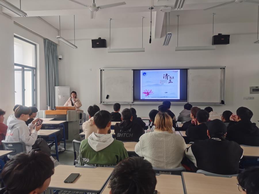 当前位置: 系部首页>学生工作为宣传清正廉洁文化,普及清正廉洁知识,提高广大学生的清正廉洁素养,2021年12月28日机械工程系2021级学生开展清正廉洁教育,本次活动由我系辅导员组织并主持。