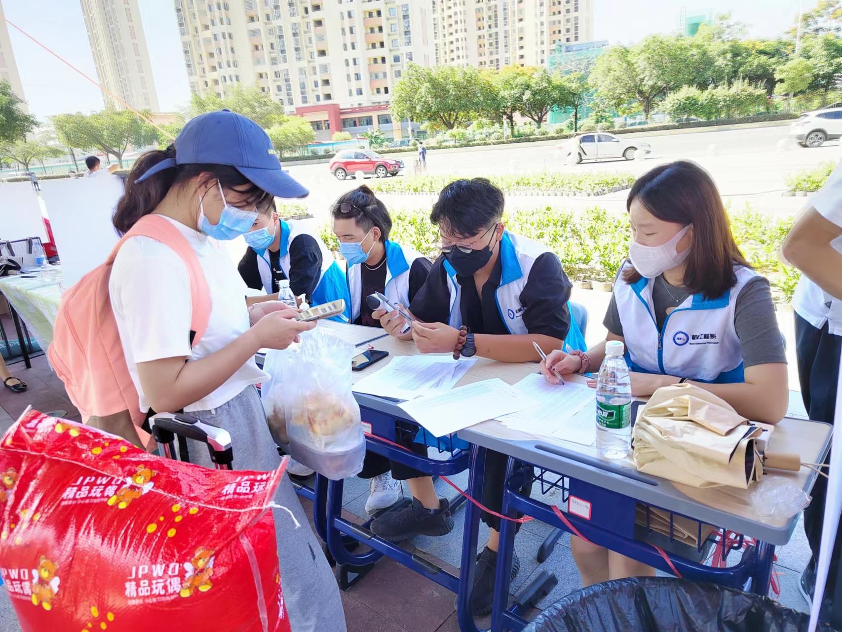 报到现场,学生经过进校通道处的体温检测、口罩更换、手部行李消毒、验码点,通过校园“第一道防线”,来到系部精心布置的“第二道防线”。为了减轻学生负担、提高现场效率,我系首次采用小程序提前搜集健康码、行程码、48小时核酸检测、健康打卡等材料,二次测温、材料核验,报到工作平稳有序进行。