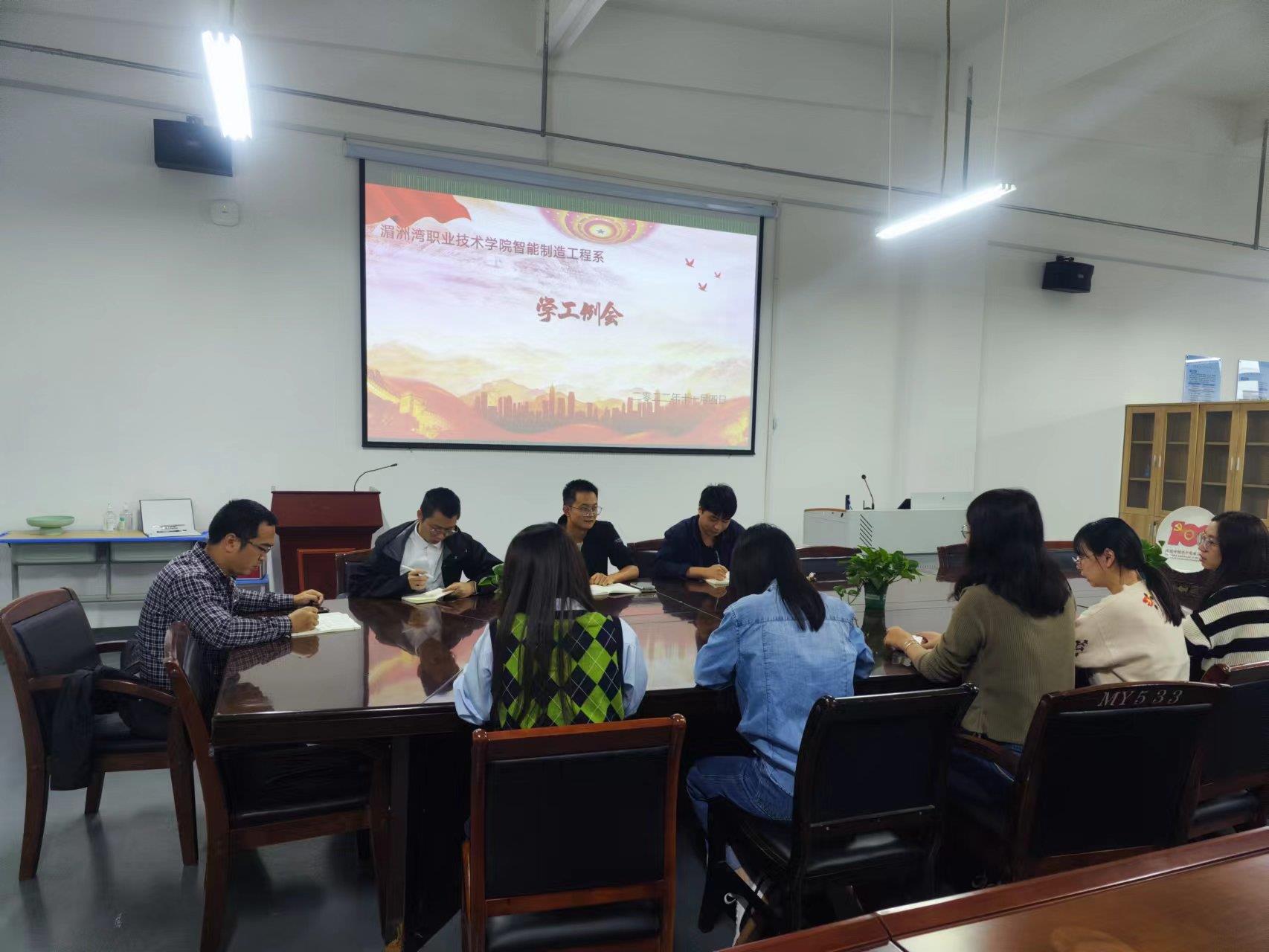 当前位置: 系部首页>学生工作11月4日下午,智能制造工程系召开学工例会,回顾总结10月份学生工作,会商11月工作安排,精准调配学工人员工作内容,切实提高系部学生工作效率。会议由党支部副书记陈建武主持,全体学工人员参与。